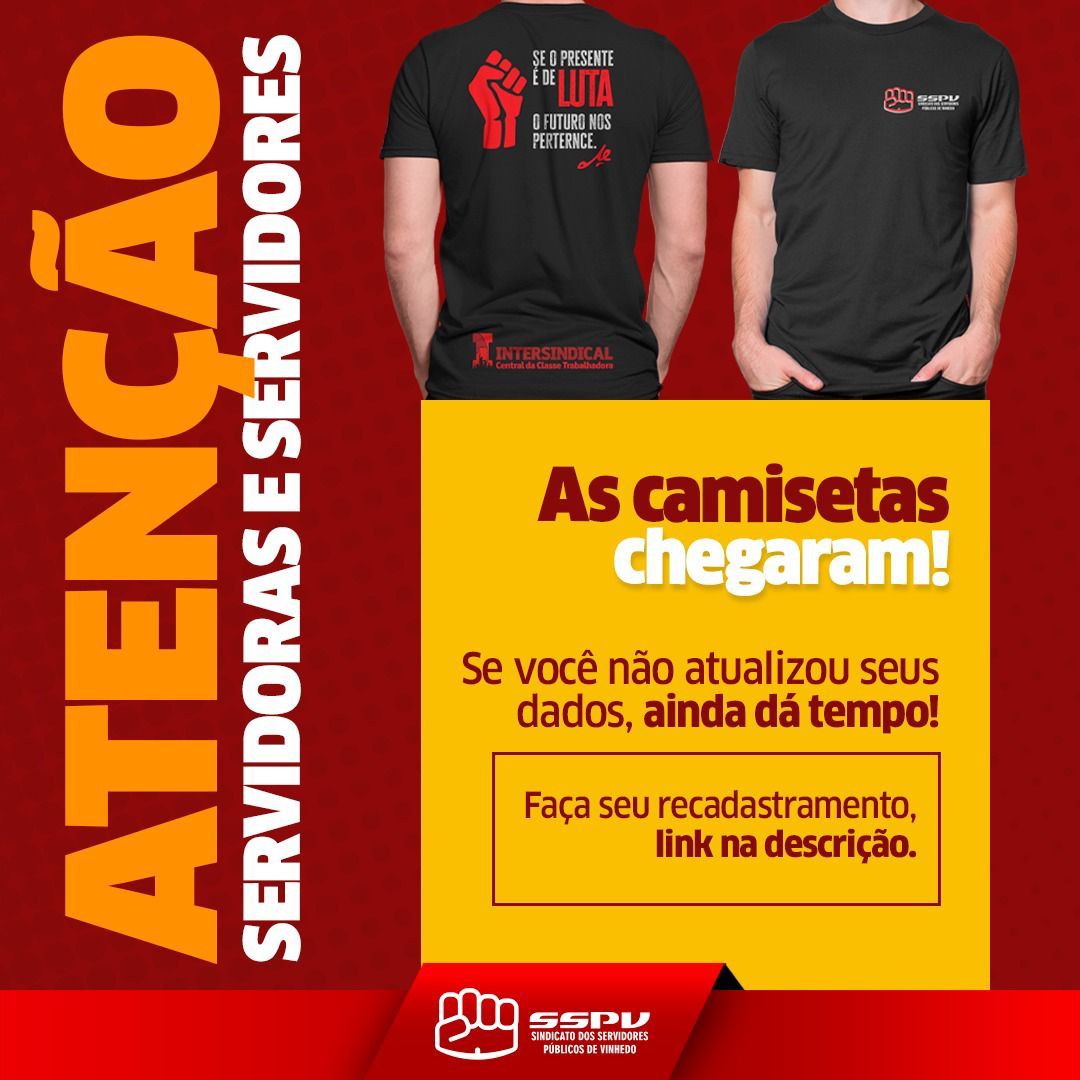Servidora e servidor sindicalizado, atualize o seu cadastro e ganhe uma camiseta do Sindicato dos Servidores Públicos de Vinhedo. As camisetas já chegaram e quem já fez a atualização, pode passar na sede e pegar a sua.
