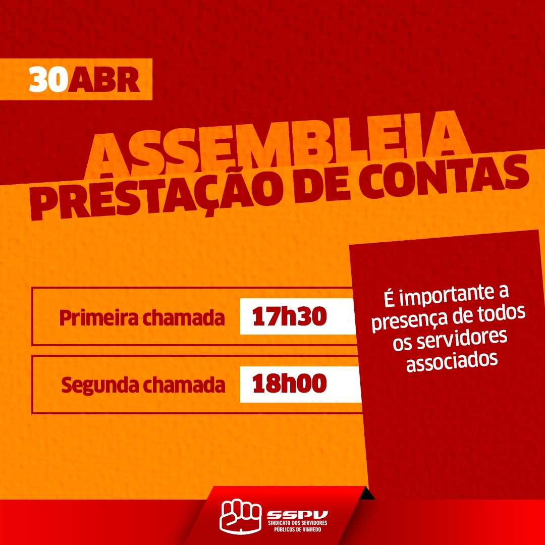 Hoje dia 30 de abril, convidamos todos a participar da assembleia de prestação de contas.