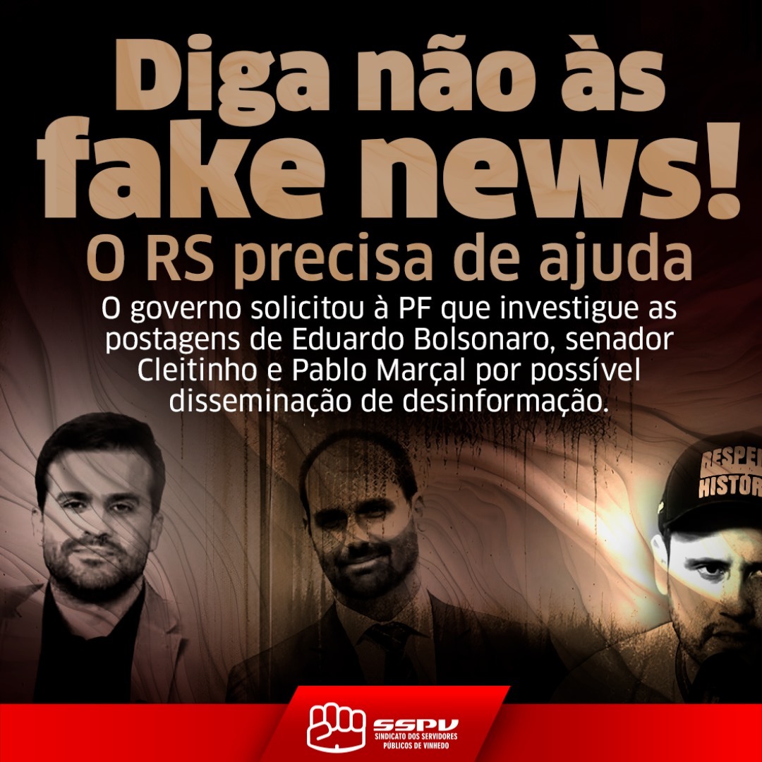 O governo federal solicitou à Polícia Federal (PF) uma investigação sobre as fake news relacionadas à tragédia do Rio Grande do Sul. A investigação inclui publicações feitas em redes sociais por figuras bolsonaristas como o deputado federal Eduardo Bolsonaro (PL-SP), senador Cleitinho (Republicanos – MG) e o oportunista do Pablo Marçal.