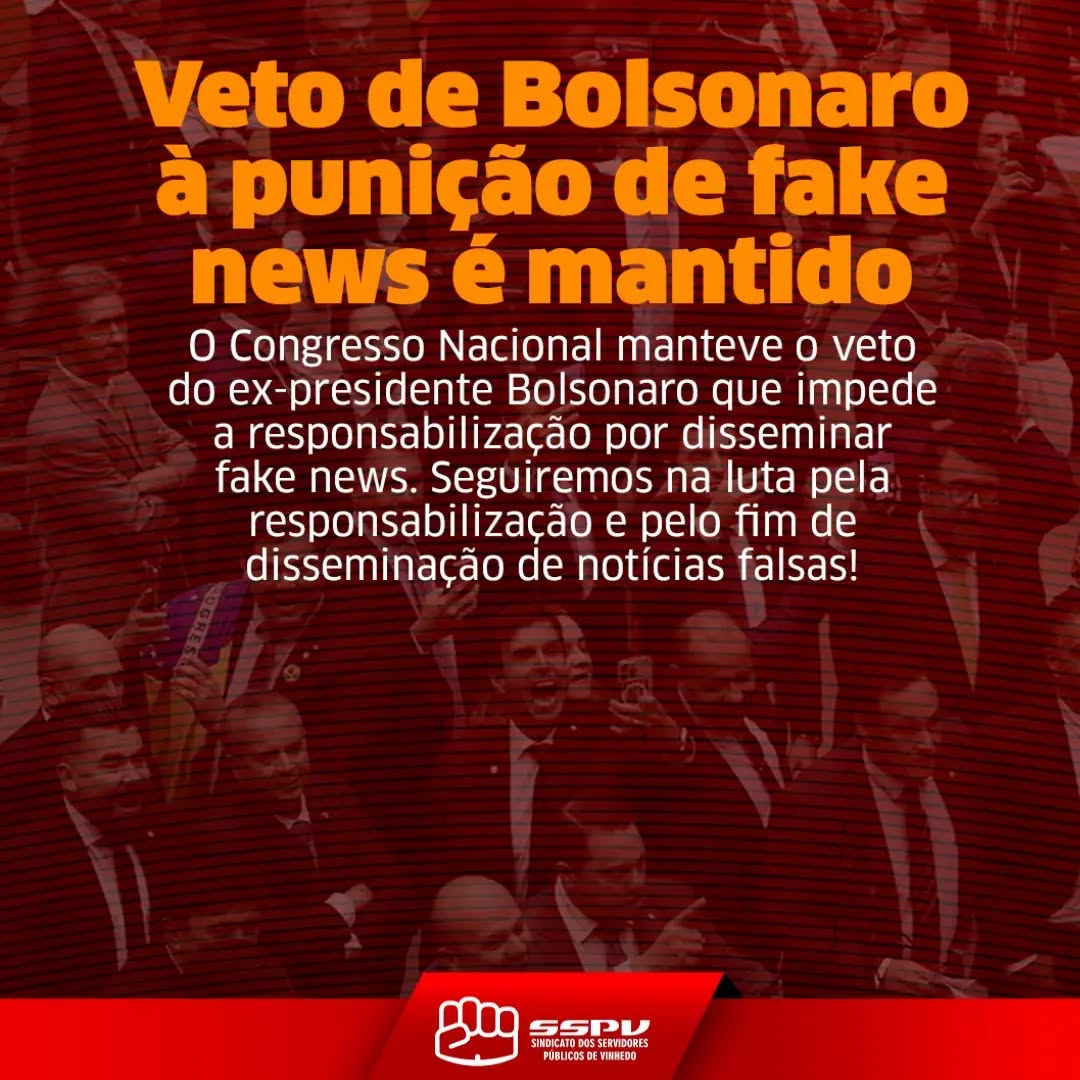 Esta manobra permitir que esses setores políticos se utilizem da produção e divulgação de notícias falsas neste período eleitoral sem serem responsabilizados. Estratégia amplamente utilizada por eles nas últimas eleições. Nós lutamos pela derrubada deste veto, para que, aqueles que promovem a desinformação e o ódio sejam devidamente responsabilizamos pelos atos cometidos. Só a luta muda a vida!