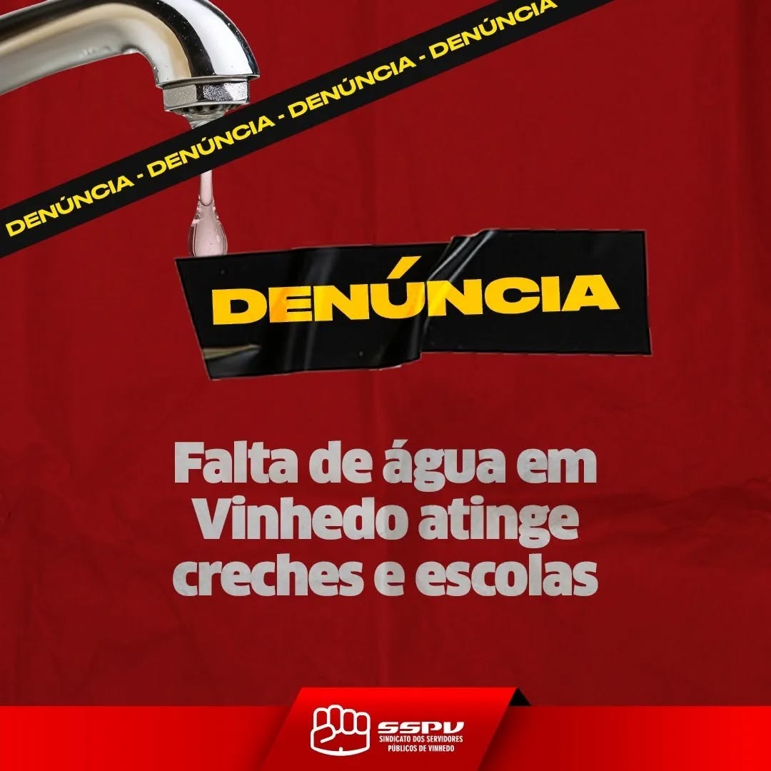 Com isso, o Sindicato dos Servidores Públicos de Vinhedo recebeu denúncias de falta de água em escolas, como na CEI Pedrinho. O SSPV segue cobrando a prefeitura para que haja uma solução. Não é possível que nas escolas não haja água para beber e para higienizar os banheiros!