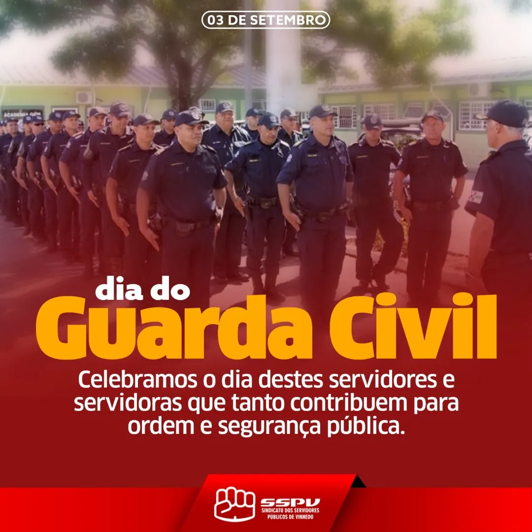 Neste 3 de setembro comemoramos o Dia da Guarda Civil. Servidores e servidoras que contribuem para o zelo no município e segurança pública. Nosso sindicato está na luta ao lado dos servidores e servidoras para garantir trabalho digno e salários justos para todos e todas. Só a luta muda a vida!