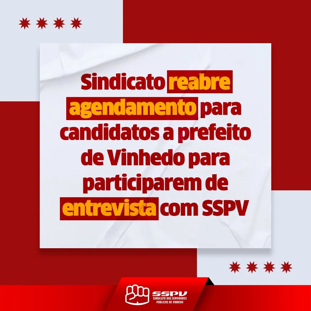 Após inúmeros questionamentos de apoiadores de um candidato a prefeito sobre o seu não agendamento para entrevista, o sindicato, apesar de ter explicado a falta de retorno em prazo pré-determinado, abrirá exceção para o agendamento dessa entrevista.