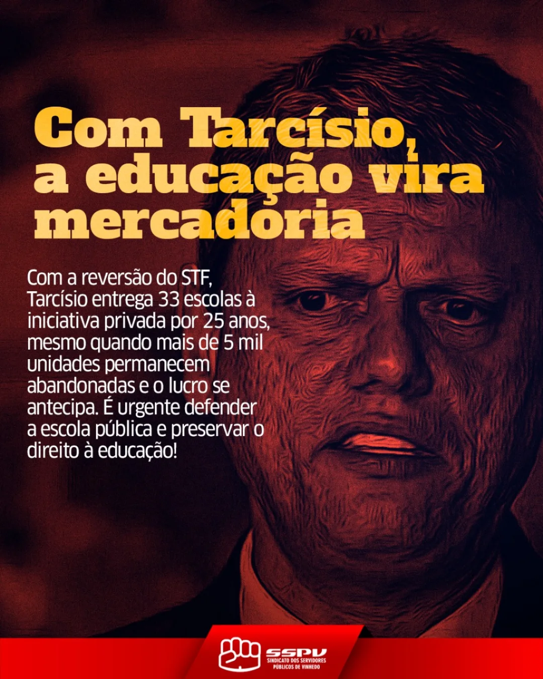Esse modelo de privatização não é novidade. A mesma lógica foi aplicada aos cemitérios da cidade de São Paulo, onde os preços dispararam 500% após a privatização. Agora, o mesmo erro está sendo trilhado na educação pública. O que está em jogo? Transformar um direito fundamental em mercadoria para o lucro de poucos, enquanto o povo paga o preço. O objetivo: favorecer grandes empresas em detrimento da qualidade do ensino e do acesso universal à educação pública.