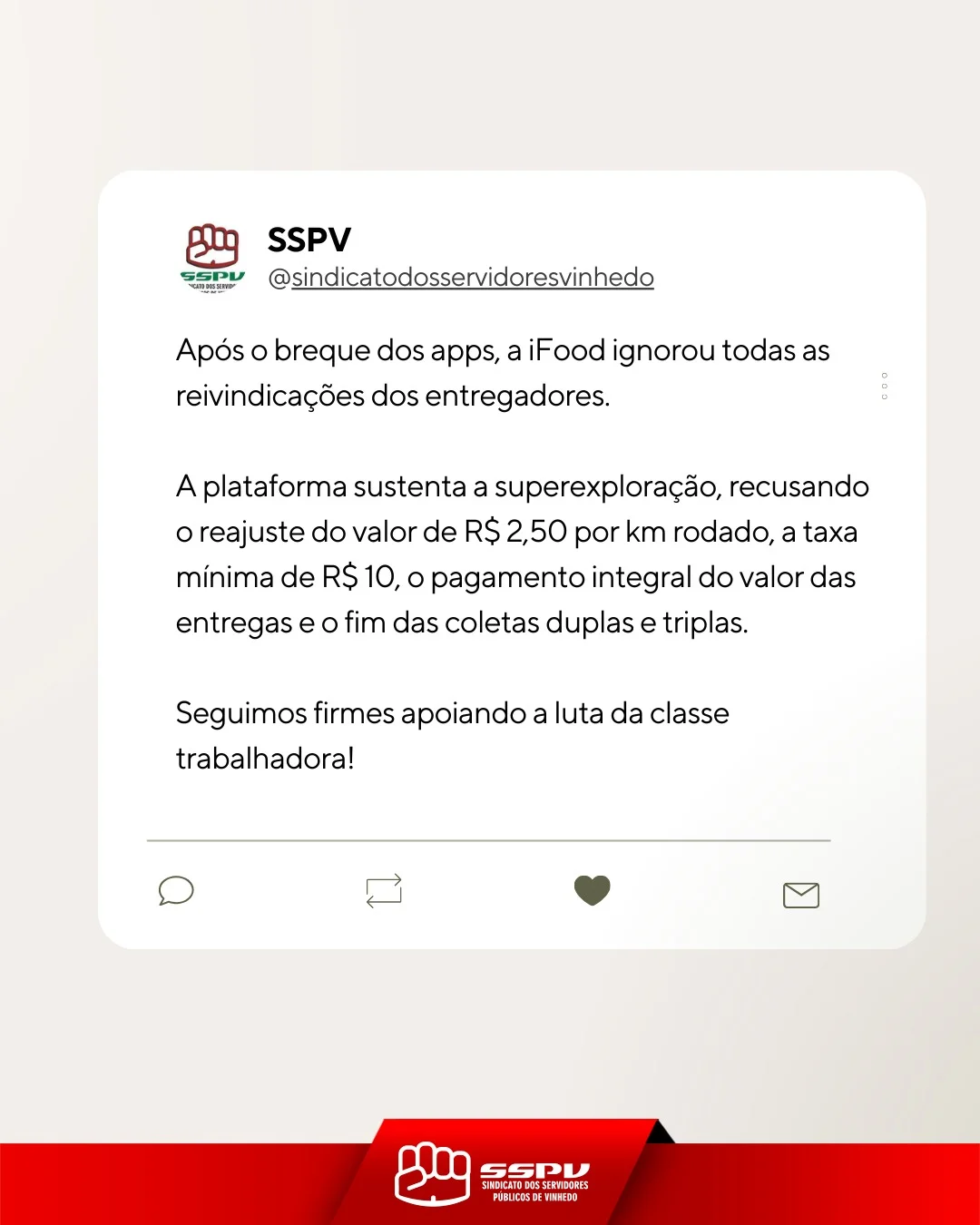 Seguimos firmes apoiando a luta da classe trabalhadora! Só a luta muda a vida!