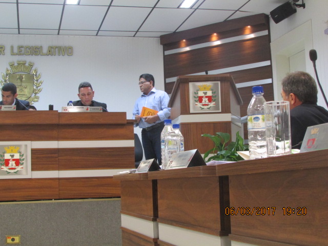 O Presidente do Sindicato dos Servidores Donizete Vicente utilizou a tribuna da Câmara Municipal, no dia 6 de março, para anunciar a abertura da nossa Campanha Salarial 2017. Outros trabalhadores também estiveram presentes, entre o público.