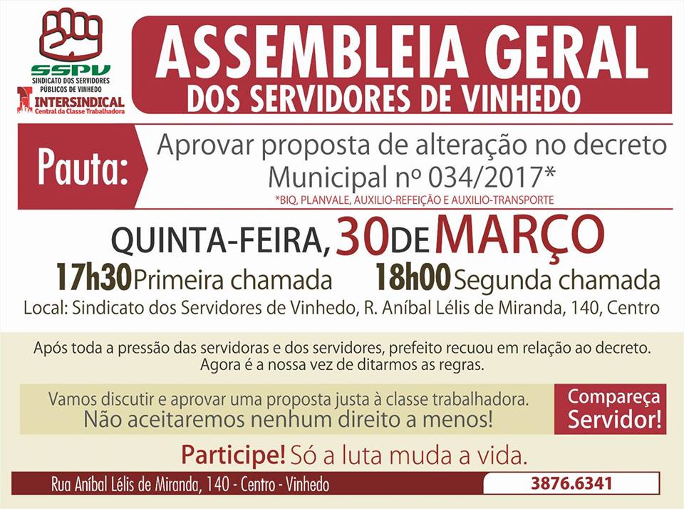 Participe da assembleia no dia 30 de março, às 17h30, na sede do Sindicato.