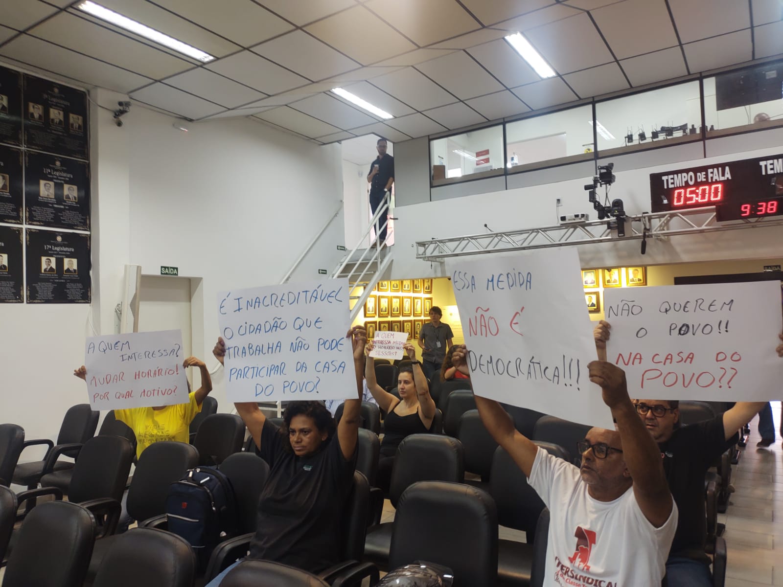 Muito nos admira o trecho da justificativa do vereador Mazinho “Acredito que o horário que nós estamos alterando, Sr Presidente, não vem mudar em nada, não vem mudar em nada, em nada, a respeito de quem realmente queira participar das sessões”. Ora, será que já existe um Projeto de Lei que votarão na próxima sessão ordinária onde garanta a liberação de todas e todos os trabalhadores, públicos ou não, sem prejuízo financeiro para participarem das sessões?
