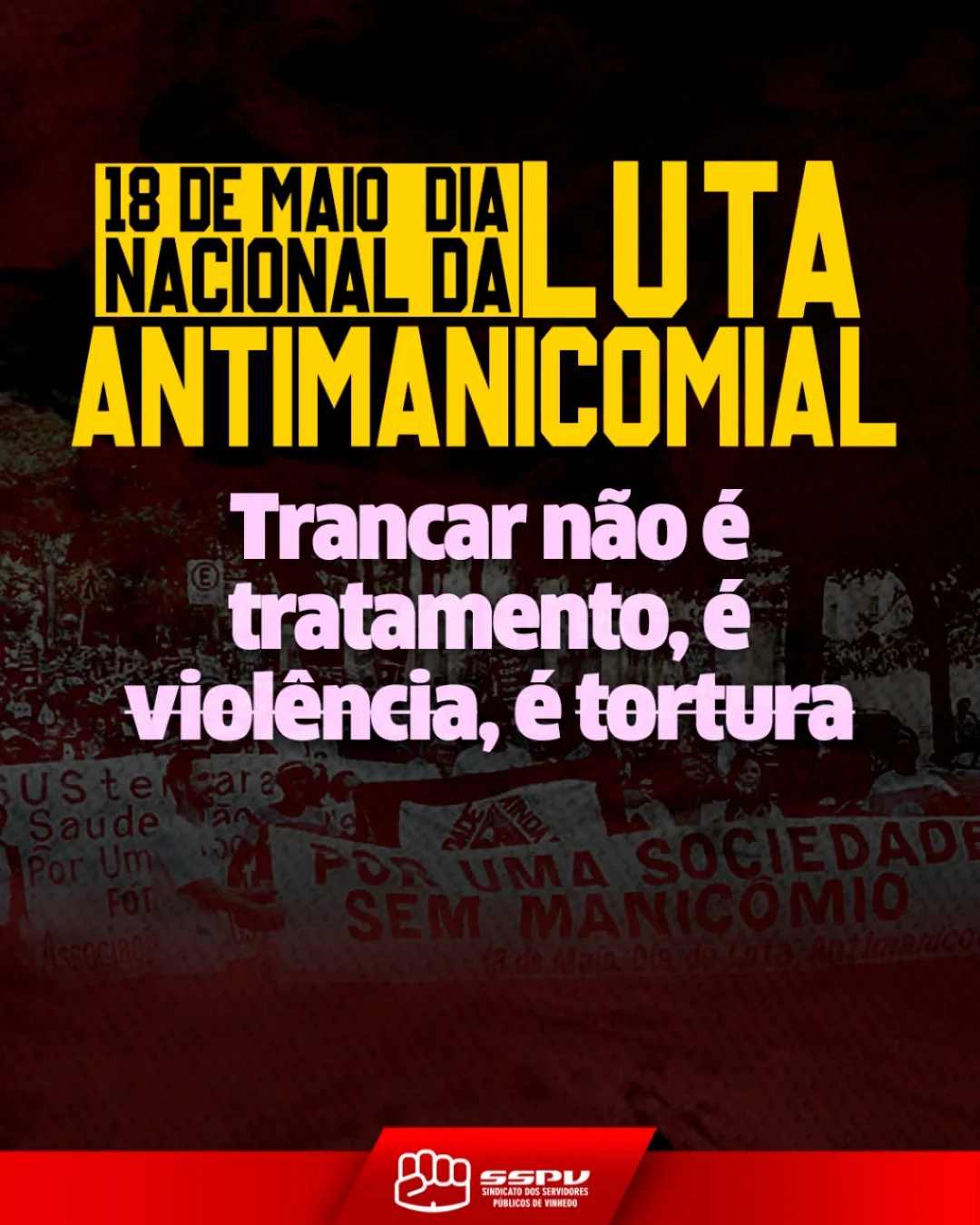 É preciso afirmar: saúde mental se constrói com políticas públicas, com vínculo social, com amor e com cuidado. Neste 18 de maio, seguimos em unidade, ao lado dos trabalhadores e trabalhadoras da saúde mental e de todas as pessoas que necessitam desse serviço. Não aceitaremos retrocessos. Nenhum direito a menos! Só a luta muda a vida!